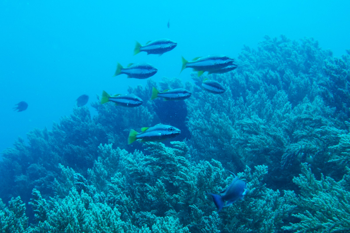 流れに乗ってドリフトダイブ、透明度良好。ウミガメ多数出現。