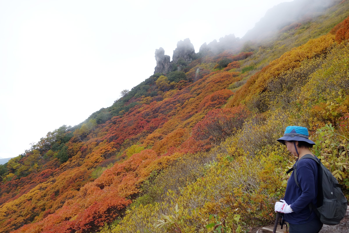 頂上は雲に覆われていましたが、やがて雲が切れて、きれいな草紅葉を見ることができました。