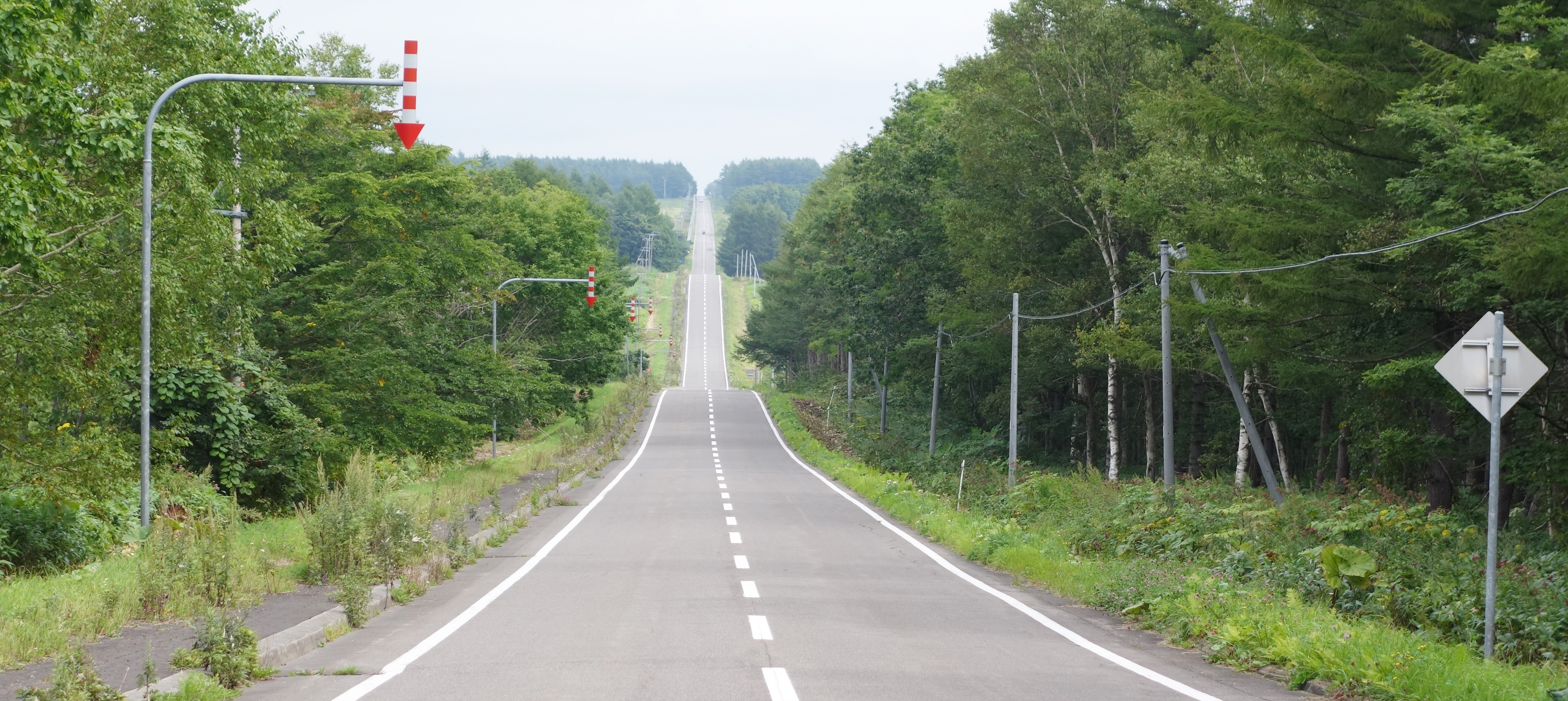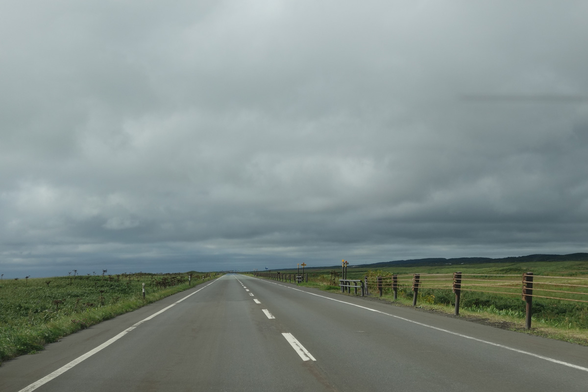 午後トナカイ牧場を見た後、オロロンライン(この辺は道道106号線)を稚内に向かいます。この道もまた直線が続いていました。