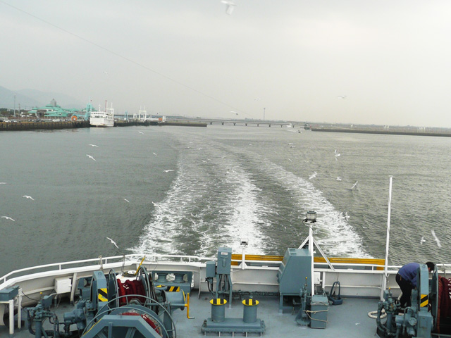 1日目は、空港から熊本市内を通り抜けて熊本港からフェリーに乗り雲仙温泉に向かいます。初日の走行距離は約50km。