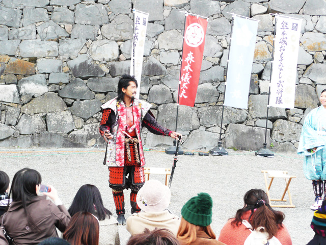 フェリーで熊本に戻り、熊本城に向かいました。途中お城の近くで「政木屋」と言う店で、昼食にそばを頂きました。色の黒い肥後そばは香り高くおいしかった。