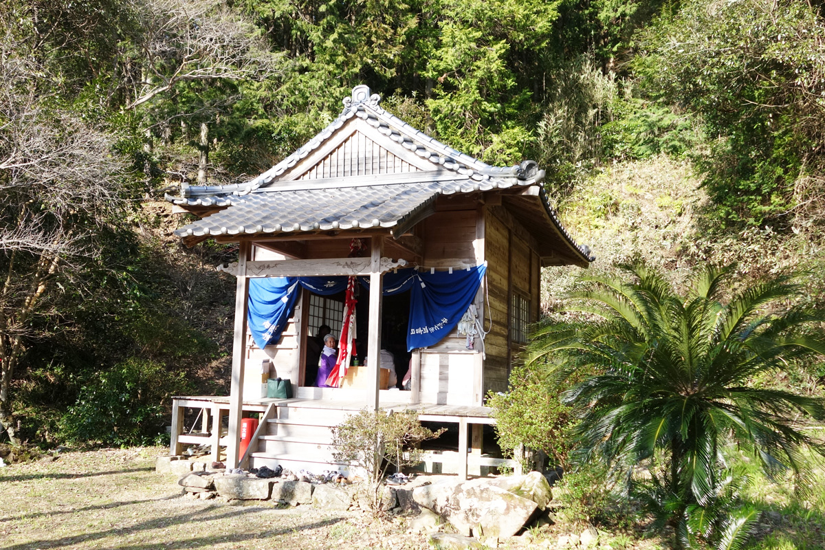 仏坂不動尊は、お堂前に屋根を取り付ける工事中でした。須崎市神田(こうだ)でお地蔵様の餅まきの案内を見つけて寄ってみることにした。軽トラックのおじさんから現金の接待を頂いていたので、それをお供えさせていただいた。ここで餅をたくさん頂き、宿の「一福旅館」で翌朝のメニューなどに加えて頂いた。