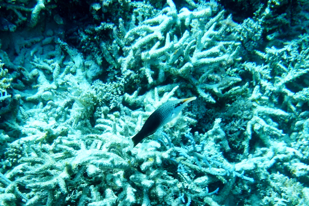 白化したイソギンチャクとハナビラクマノミが印象に残った。