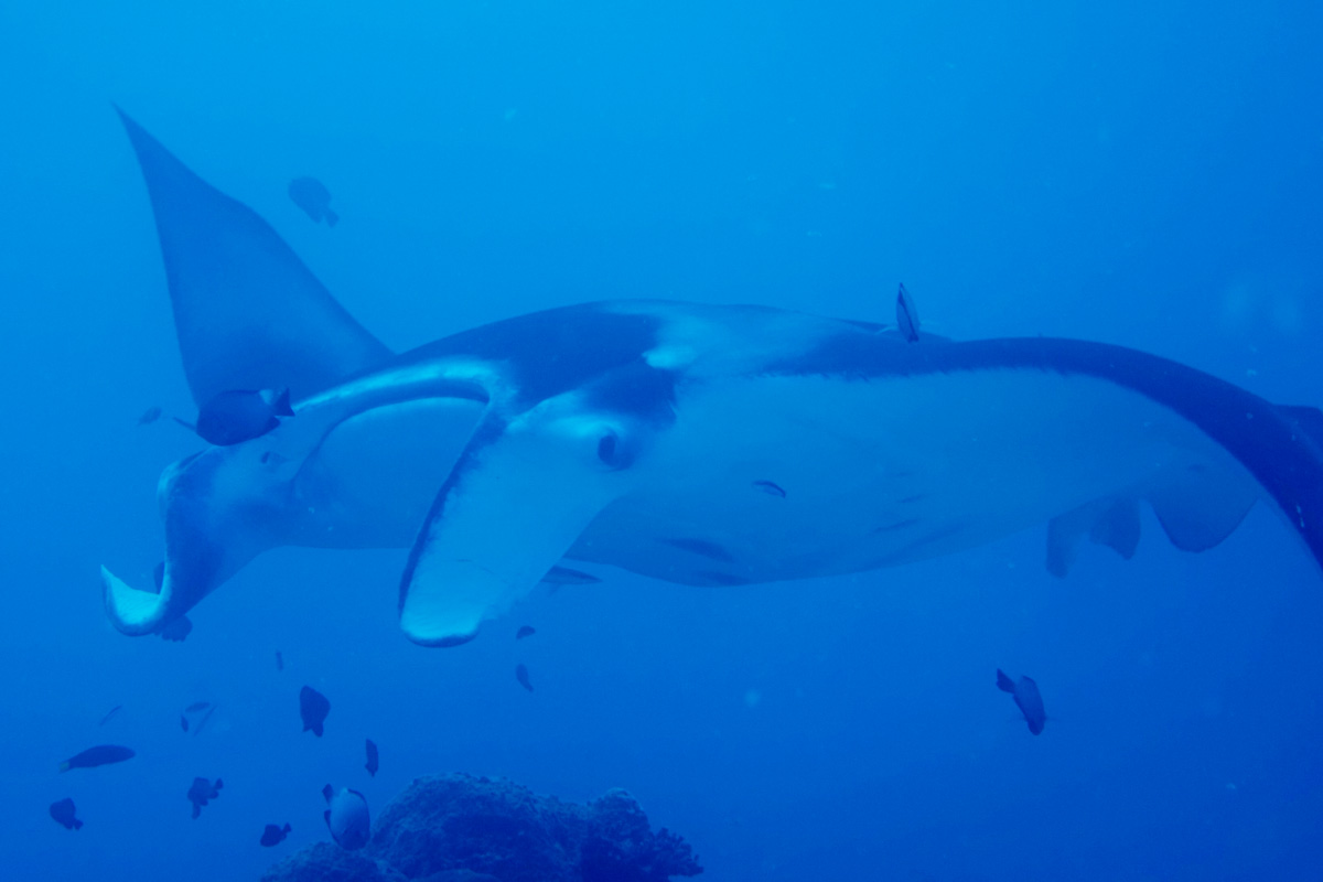 透明度は10m程度、着底してしばし待つ程に、目の前にマンタが現れた。