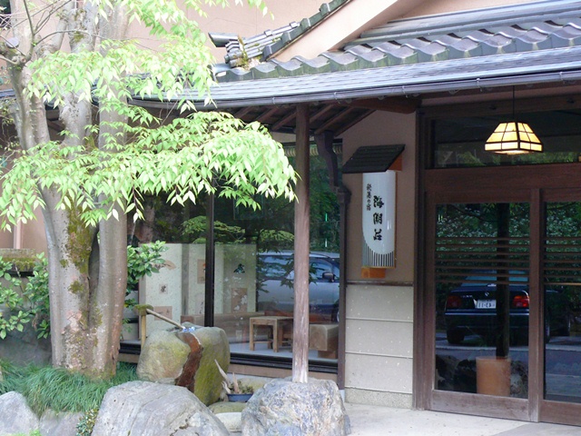 海潮温泉は、今夜の宿の「海潮荘」ともう一軒「蛍の宿 山水館」の、宿が2件だけの小さな温泉地です。 しかし、「海潮荘」は日本秘湯を守る会に入っている宿で、湯の良さは折り紙付。巨岩を配した露天風呂は、趣あるものでした。