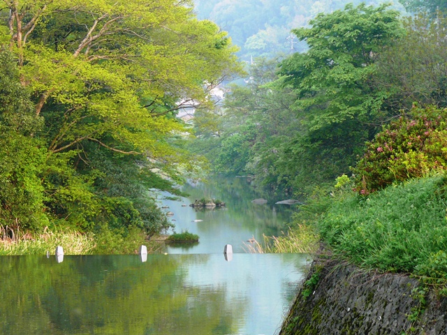堀川めぐりは、松江城の内堀・外堀を小舟で一周する遊覧船です。堀にはいくつもの橋が架かっていて、中には低くて狭い通路のところもあり冒険気分です。
